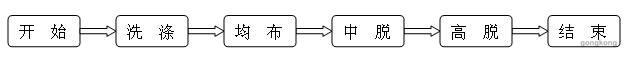 首先,加水,正反转洗涤25分钟,洗涤完毕后,排水,进入脱水阶段,脱水阶段包括均布、中脱和高脱三个过程,均布即是在有水和无水的情况下,以比洗涤过程高的转速正向旋转1.5分钟,使衣物均匀地附着在洗衣机的滚筒内侧,以使后续的脱水过程平稳;排水后,提高转速进入中速脱水过程(2分钟),随后再进入高速脱水过程(5分钟),使衣物的含水率降至所要求的水平。 速度的设定方式有两种: