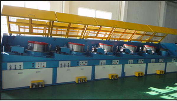 手工完成穿模后就可以整机运行实现连续的拉伸了。直进式拉丝机通常是由多台电机控制,经过多个拉伸模具后一次性把原材料拉到所需线径大小的成品。在这个工艺环节里,要求电机响应速度快,线材张力恒定,张力平衡杆波动小,不断丝不松丝。